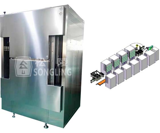 全自動堆垛式真空烘烤系統主要功能是實現電池的上、下料,干燥,冷卻全程自動化生產。該設備具備工藝流程自動控制,歷史數據查詢導出,關鍵參數實時顯示、問題報警及原因追溯、安全保護等功能。整套設備采用柔性化設計,可兼容多個型號產品,能夠實現快速換線。
