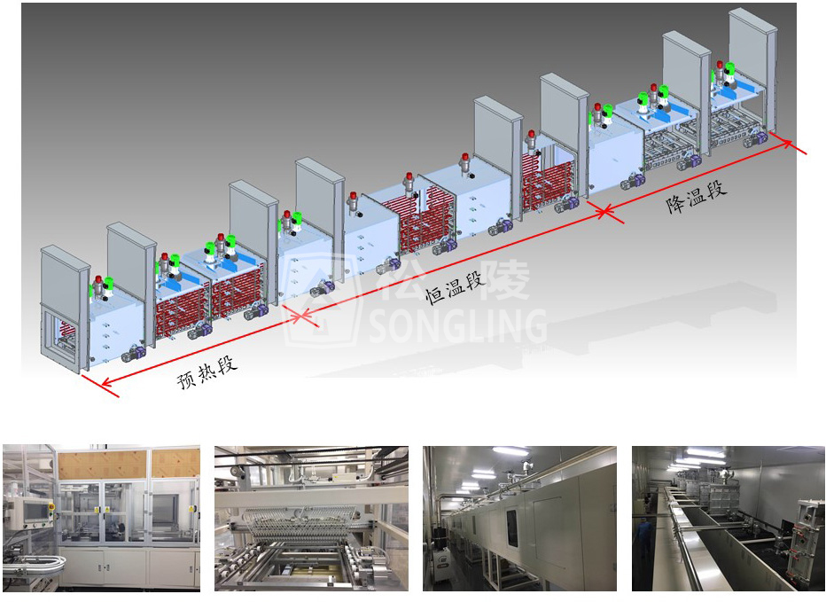 隧道式全自動(dòng)真空烘烤線是根據(jù)客戶現(xiàn)有生產(chǎn)和工藝需要,專門開發(fā)的一款電池注液前烘烤的自動(dòng)真空隧道式流水線;如果更換相關(guān)工裝夾具,同時(shí)也可以進(jìn)行極卷的烘烤和電芯規(guī)格烘烤。